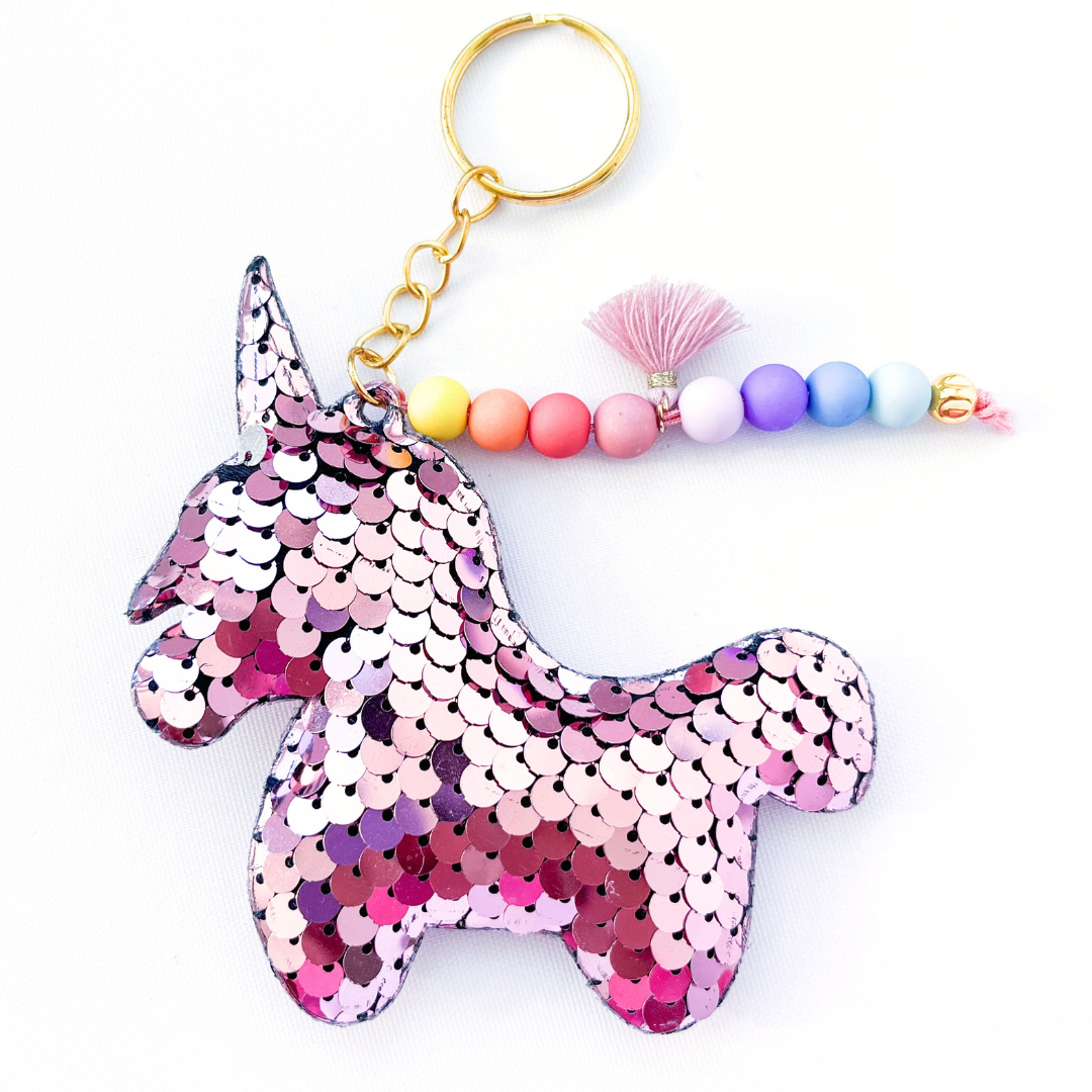 Het is niet alleen praktisch, het is ook nog eens super leuk! De sleutelhanger is versierd met kleurrijke kralen en een kwastje die de fantasie van jouw kindje zullen prikkelen. De unicorn verandert zelfs van kleur als je over de pailletten wrijft.