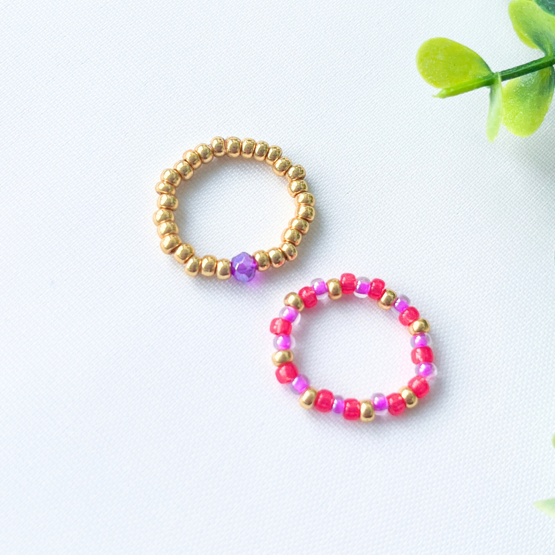 De kraaltjes zijn op elastiek geregen, waardoor de ring flexibel is en comfortabel te dragen is.