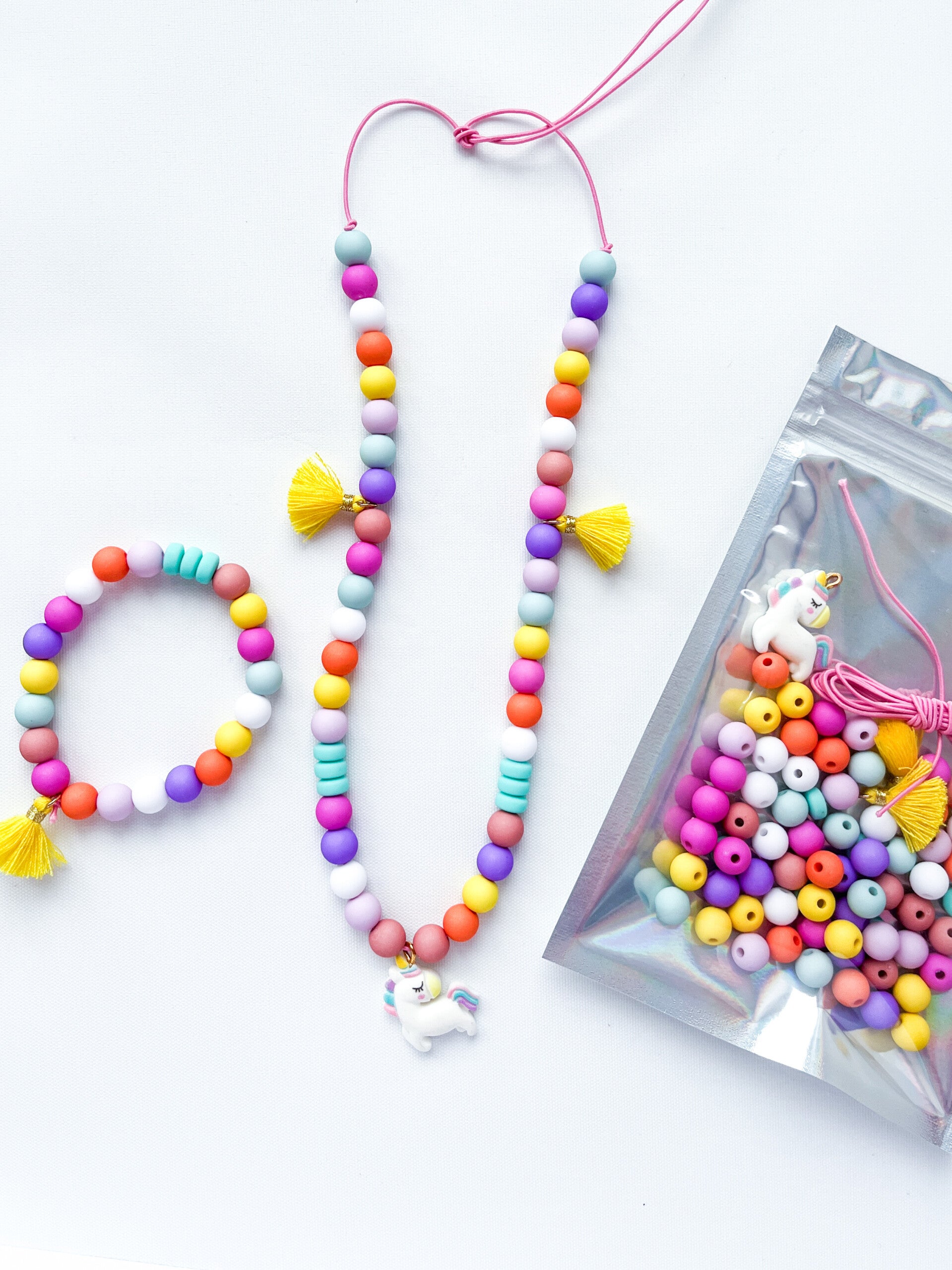 DIY-pakket voor kinderketting en armband Unicorn - veelkleurig
