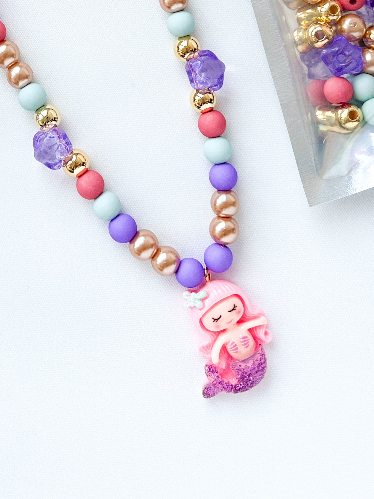 DIY-pakket voor kinderketting en armband Zeemeermin - paars koraal roze turquoise goud