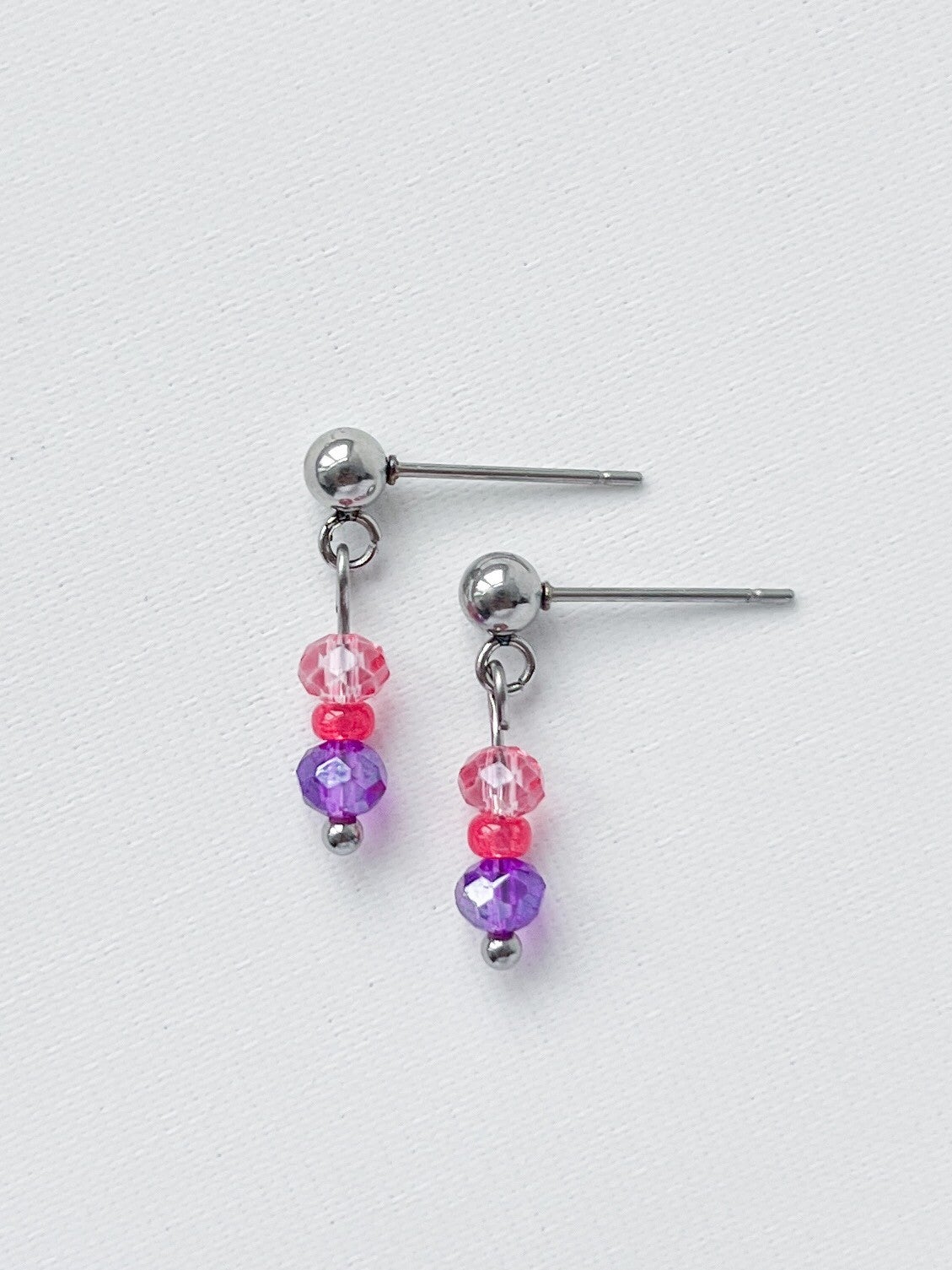 Onze oorbellen zijn gemaakt van hoogwaardige materialen, waardoor de oorbellen lang mooi blijven en jouw kindje er lang van kan genieten. Deze oorstekers zijn gemaakt van stainless steel. Met daaraan een roze en paars facetkraaltje en een klein roze Miyuki kraaltje.