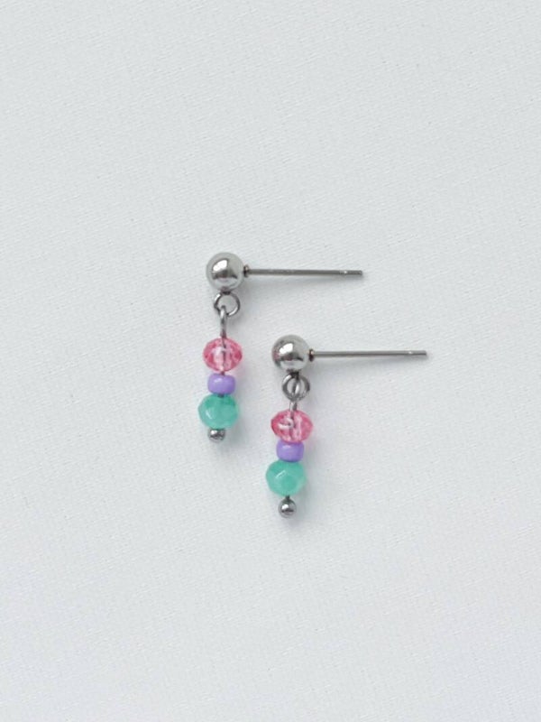 Onze oorbellen zijn gemaakt van hoogwaardige materialen, waardoor de oorbellen lang mooi blijven en jouw kindje er lang van kan genieten. Deze oorstekers zijn gemaakt van stainless steel. Met daaraan een roze en turquoise facetkraaltje en een klein lila Miyuki kraaltje.