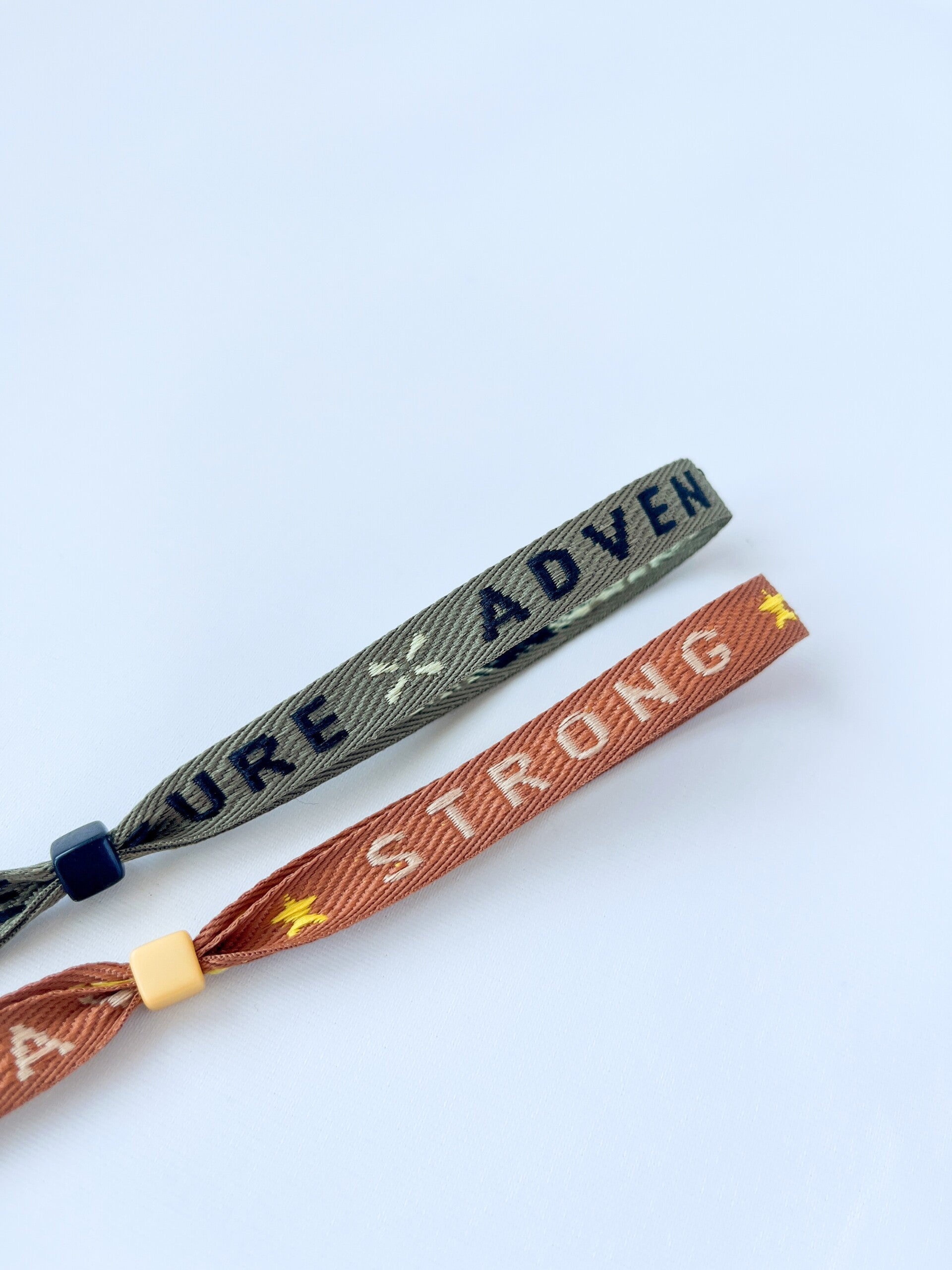 De lintarmbandjes zijn een echte hit en leuk te combineren met alle mooie zomeroutfitjes. De stoere armband past altijd door de gele acrylkraal. Hiermee kun je makkelijk de armband losser en strakker maken.