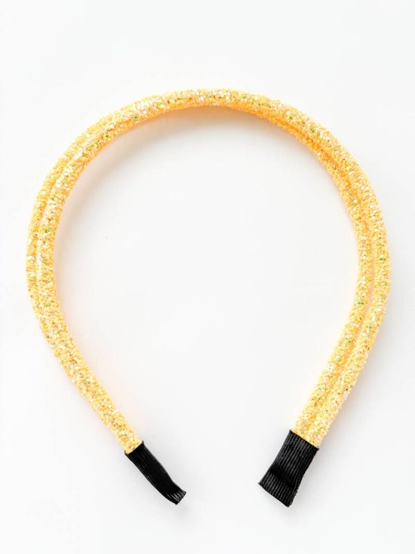 Dunne lichtgewicht dubbele haarband, all-over afgewerkt met vrolijk gekleurde glitters. Aan de uiteinden zijn de haarbanden afgewerkt met zacht materiaal zodat het niet gaat schuren achter de oren.