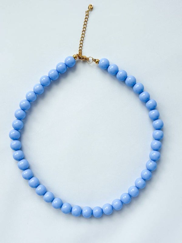 Met grote glanzende acrylkralen en een verfijnde afwerking van goudkleurige Miyuki-kraaltjes, is deze ketting hét statement dat je outfit laat knallen. Lichtgewicht en comfortabel, dus perfect om elke dag te dragen – van je koffiedate tot een avond uit.