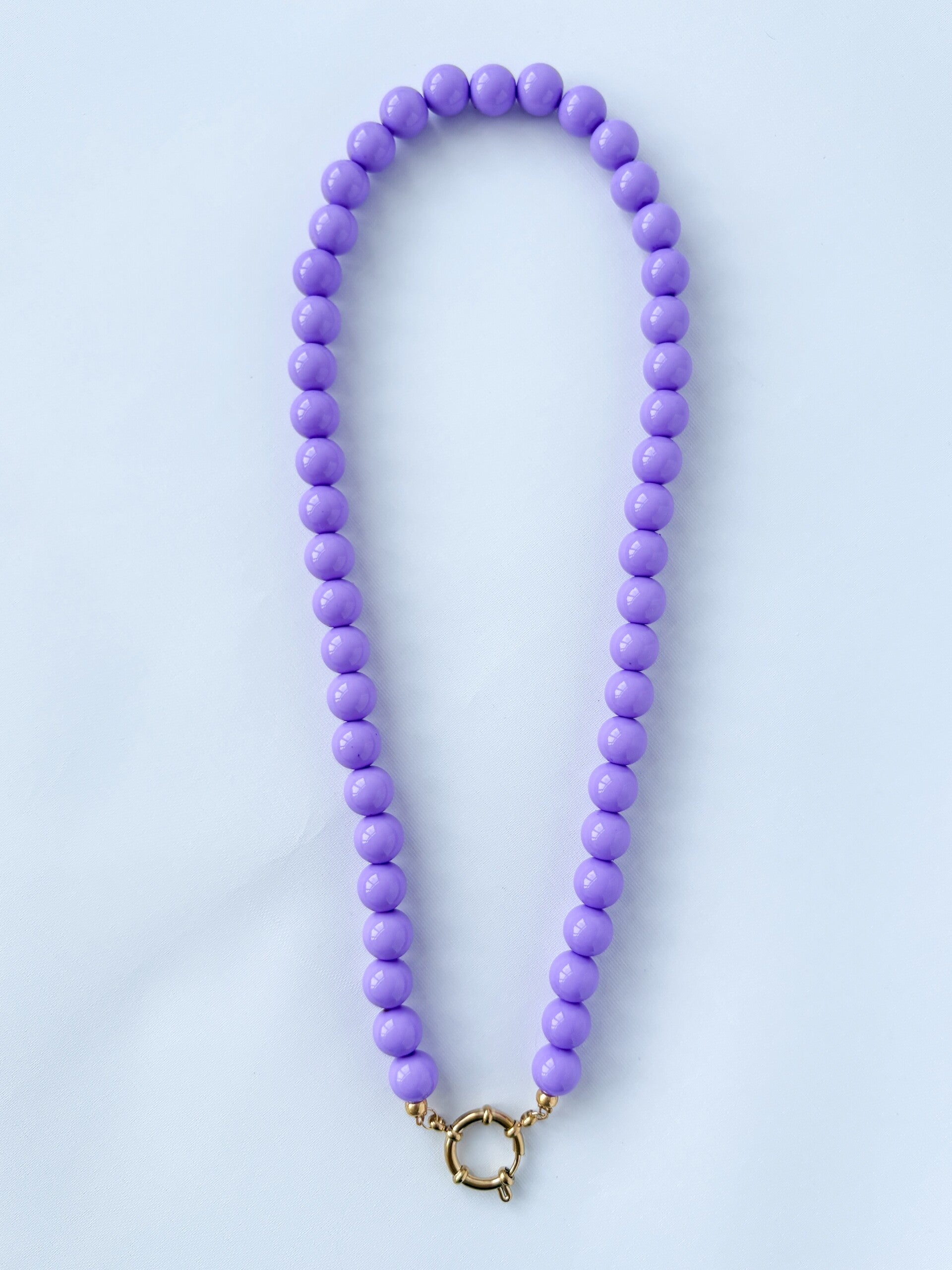 Deze trendy bubblegum ketting voor dames is handgemaakt met glanzende acrylkralen en een stoer boeislot van stainless steel.