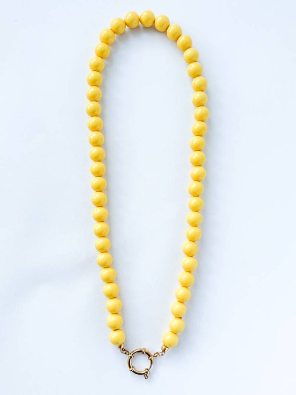 Deze trendy bubblegum ketting voor dames is handgemaakt met glanzende acrylkralen en een stoer boeislot van stainless steel.