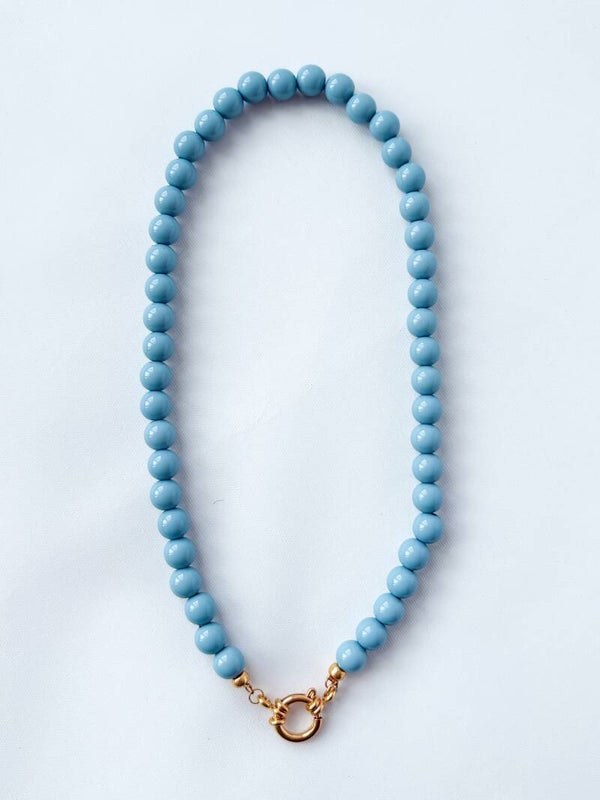 Deze trendy bubblegum ketting voor kinderen is handgemaakt met glanzende acrylkralen en een stoer boeislot van stainless steel.