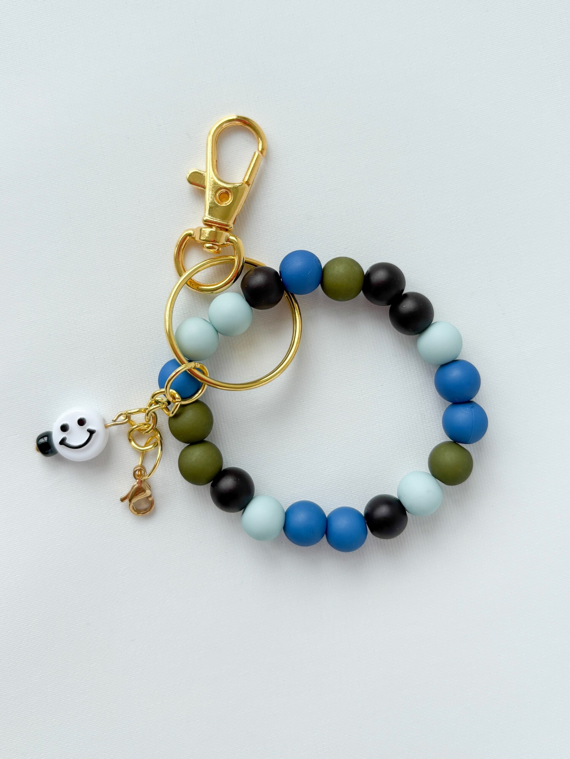 De bijpassende kralenarmband is gemaakt van stevig elastiek en zit vast aan de sleutelhanger – zo draag je 'm ook makkelijk om je pols!
