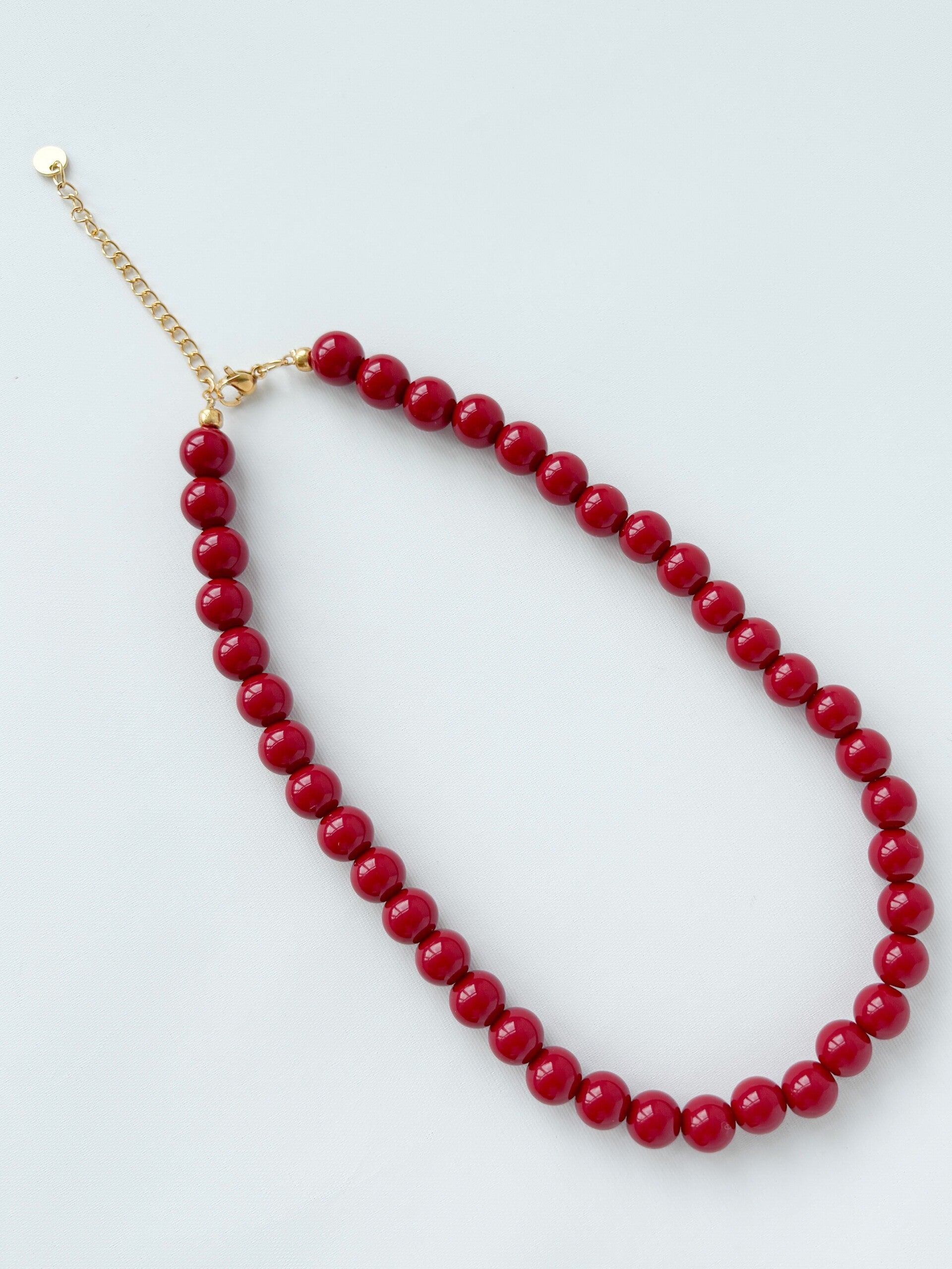 Met grote glanzende acrylkralen en een verfijnde afwerking van goudkleurige Miyuki-kraaltjes, is deze ketting hét statement dat je outfit laat knallen. Lichtgewicht en comfortabel, dus perfect om elke dag te dragen – van je koffiedate tot een avond uit.