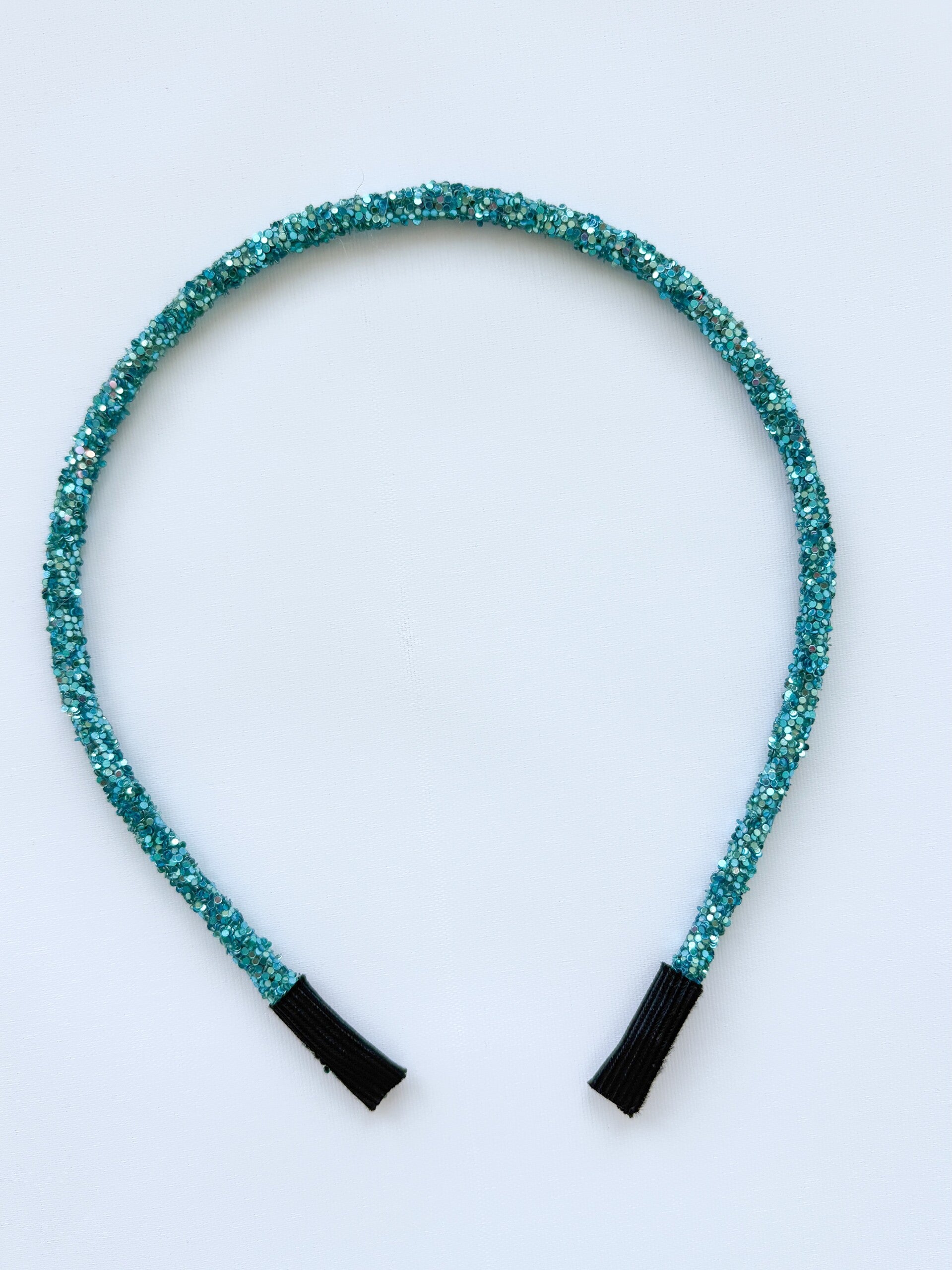 Dunne lichtgewicht haarbanden, all-over afgewerkt met vrolijk gekleurde glitters. Aan de uiteinden zijn de haarbanden afgewerkt met zacht materiaal zodat het niet gaat schuren achter de oren.